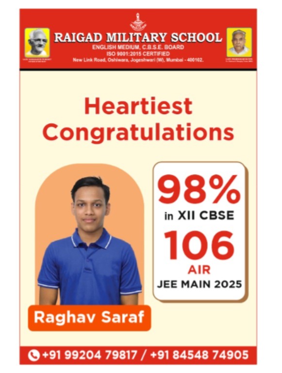 - All the Students, Teachers and staff members are insured by Raigad Military School,CBSE under Oriental Insurance Company Limited